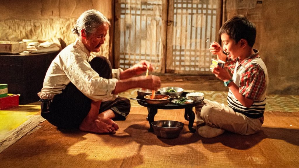 ยายของซังอูเป็นหญิงชราที่ไม่รู้หนังสือและไม่สามารถพูดได้ แต่สื่อสารด้วยความรักผ่านการกระทำ เธออาศัยอยู่ในบ้านไม้เก่า ๆ ปลูกพืชผัก เลี้ยงไก่ ใช้น้ำจากบ่อและไม้ฟืนสำหรับทำอาหาร ขณะที่ซังอูไม่คุ้นเคยกับวิถีเช่นนี้และรู้สึกว่าถูกพรากจากโลกที่เขาเคยรู้จัก
